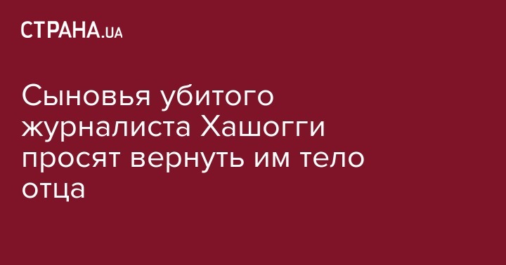 Сыновья убитого журналиста Джамаля Хашогги обратились к властям Саудовской Аравии с требованием вернуть тело отца. Об этом они заявили в интервью CNN.