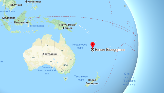 Новую Каледонию открыл Джеймс Кук в 1774 году. Она находится в 20 тысячах километрах от Парижа в Тихом океане. Его размер - 18 тысяч квадратных метров, то есть чуть больше половины от территории Крыма.