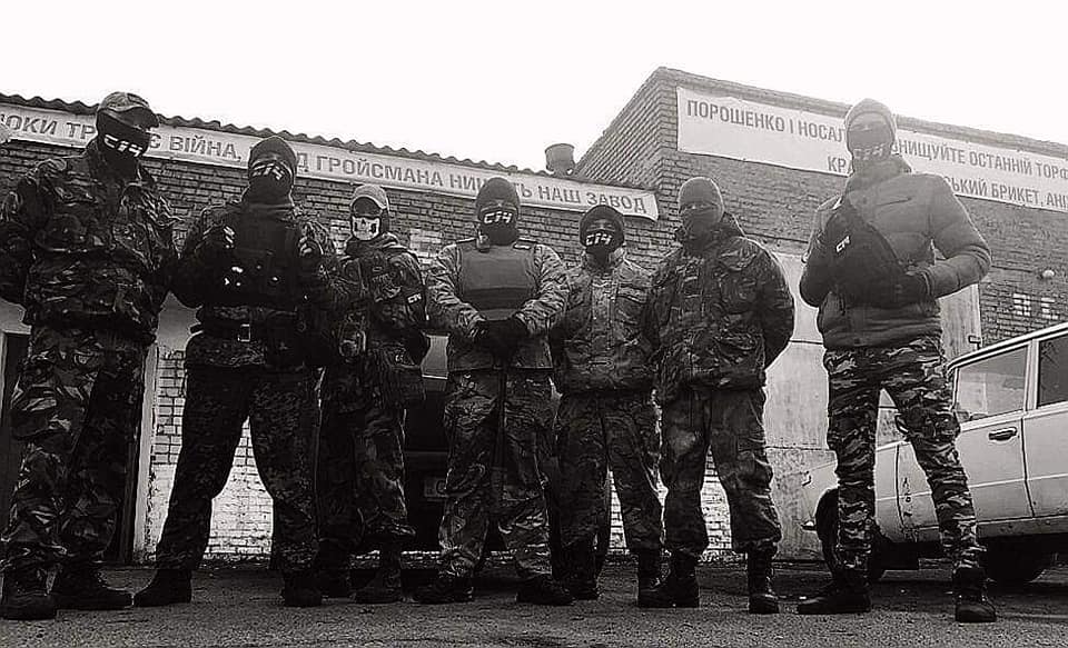 Националисты заявляют, что "не просто охраняют завод, но и физически помогают шахтерам устранять мелкие неполадки". "Так, на выходных, вместе с работниками националисты чинили конвейерную ленту, которая подает брикет из производственного цеха в бункеры", - говорится в сообщение.