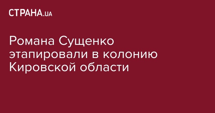 Украинского журналиста Романа Сущенко, который был осужден в России за шпионаж, этапировали в исправительную колонию в Кировской области. Об этом на своей странице в Facebook сообщил лишенный адвокатского статуса в РФ Марк Фейгин, который защищает интересы украинца.