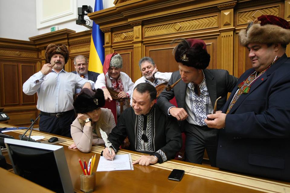 Нардепы, попавшие под санкции РФ, оделись "под казаков" и написали Путину письмо, не вынимая его из файла. Фото