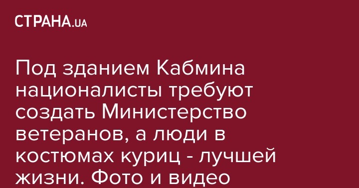 Под зданием Кабмина националисты требуют создать Министерство ветеранов, а люди в костюмах куриц - лучшей жизни. Фото и видео