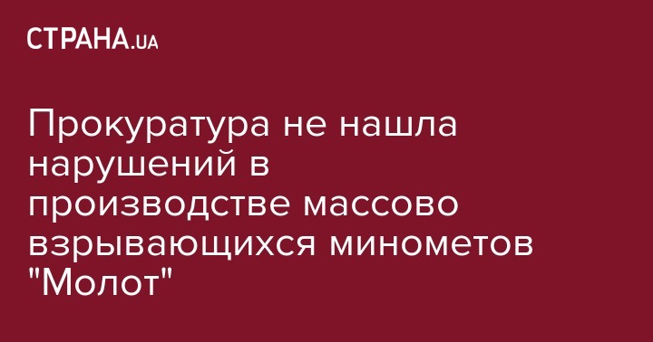 Прокуратура не нашла нарушений в производстве массово взрывающихся минометов "Молот"