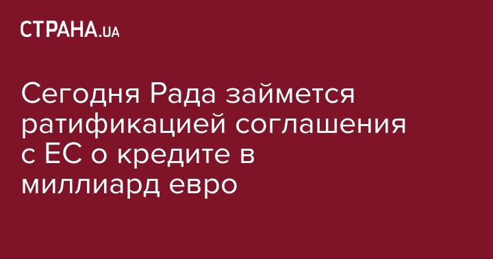 Сегодня, 8 ноября, народные депутаты рассмотрят ратификацию Меморандума о взаимопонимании между Украиной как заемщиком и ЕС как кредитором и кредитном соглашении о макрофинансовой помощи ЕС Украине в размере  миллиарда евро. Об этом говорится в повестке дня ВР, обнародованной на сайте парламента.