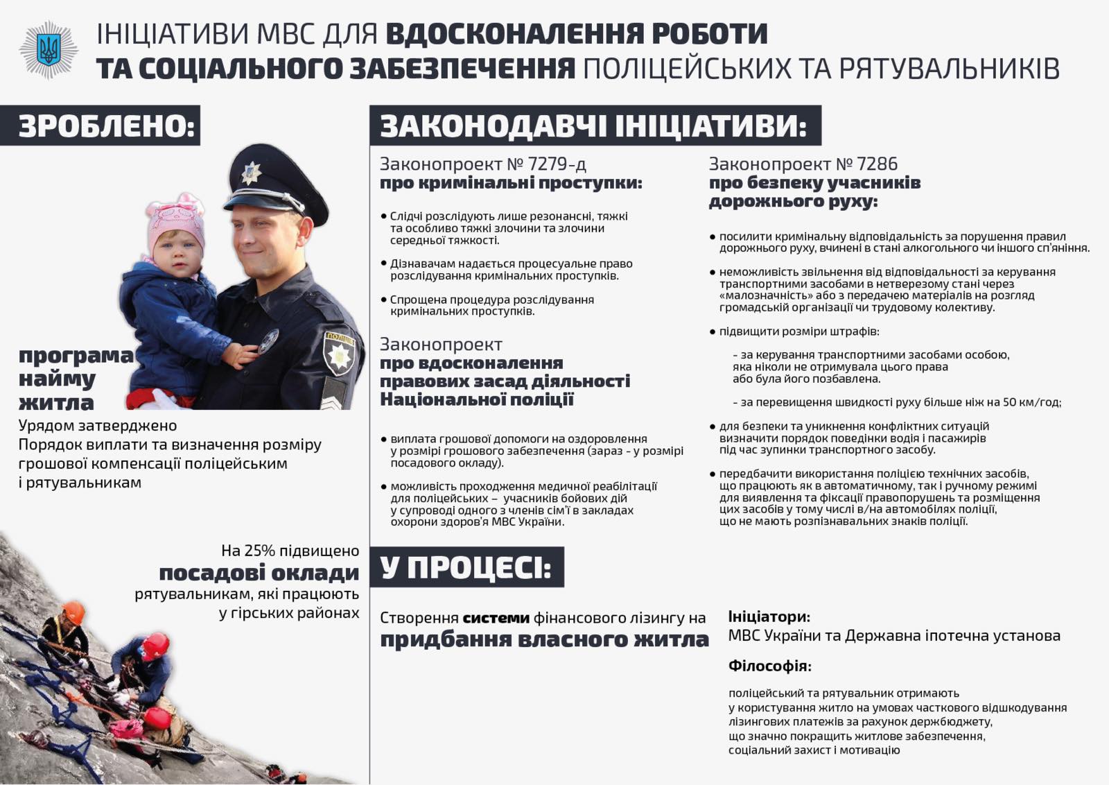 Кроме того, в рамках программы зарплата полицейских должна вырасти на 30%, также предусмотрены введение системы получения собственного жилья после 2 лет службы на основании ипотеки до 20-летнего льготного финансового лизинга с учетом полного погашения процентов со стороны министерства и бонусного погашения до 40% лизинга МВД за выслугу лет.