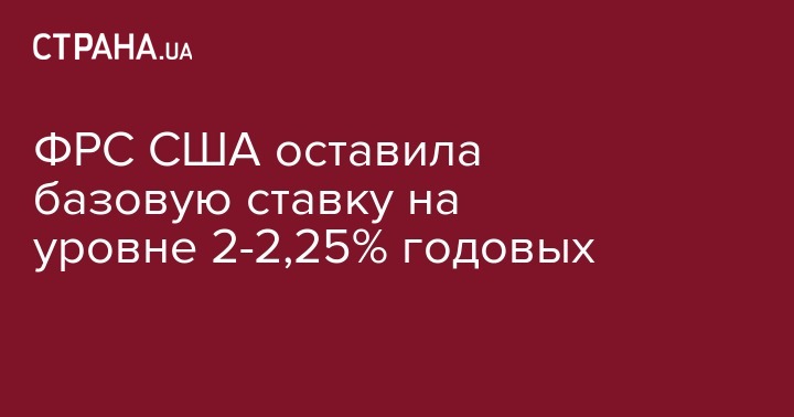 ФРС США оставила базовую ставку на уровне 2-2,25% годовых