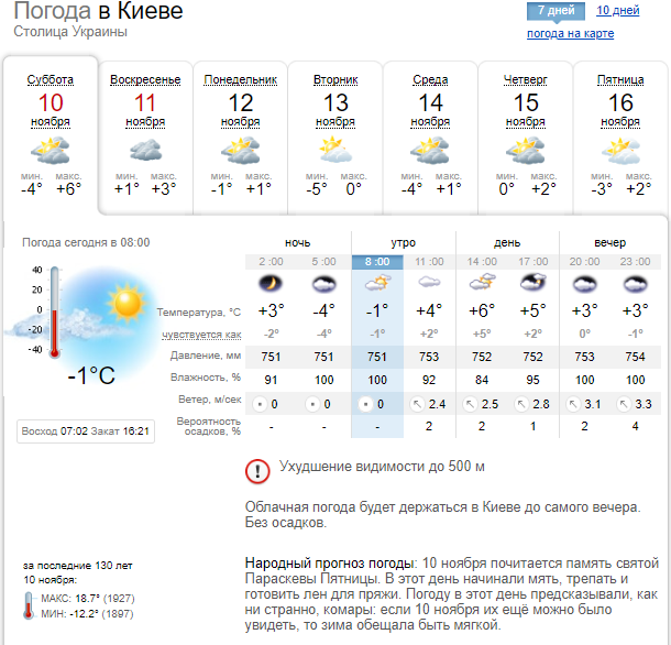 Погода в Киеве 10 ноября Фото: meteo.gov.ua