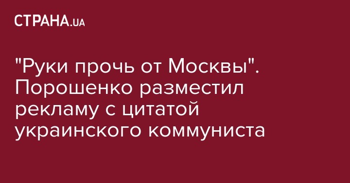 "Руки прочь от Москвы". Порошенко разместил рекламу с цитатой украинского коммуниста