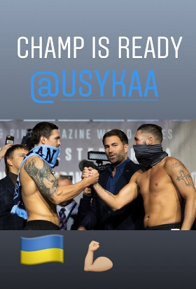 Полузащитник сборной Украины Александр Зинченко, который 2 ноября в третий раз в сезоне вышел в стартовом составе "Манчестер Сити", поддержал украинского боксера Александра Усика накануне его боя с Тони Белью. Снимок, свидетельствующий об этом, он выложил в своем Instagram.