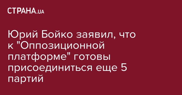 В свою очередь, сопредседатель "Оппозиционного блока" Юрий Бойко в прямом эфире телеканала 112 Украина подтвердил, что уже есть несколько партий, которые готовы присоединиться к объединению "Оппозиционная платформа - За життя".
