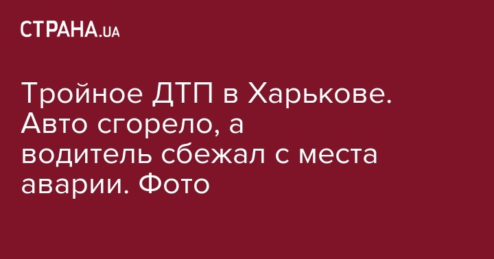 Тройное ДТП в Харькове. Авто сгорело, а водитель сбежал с места аварии. Фото