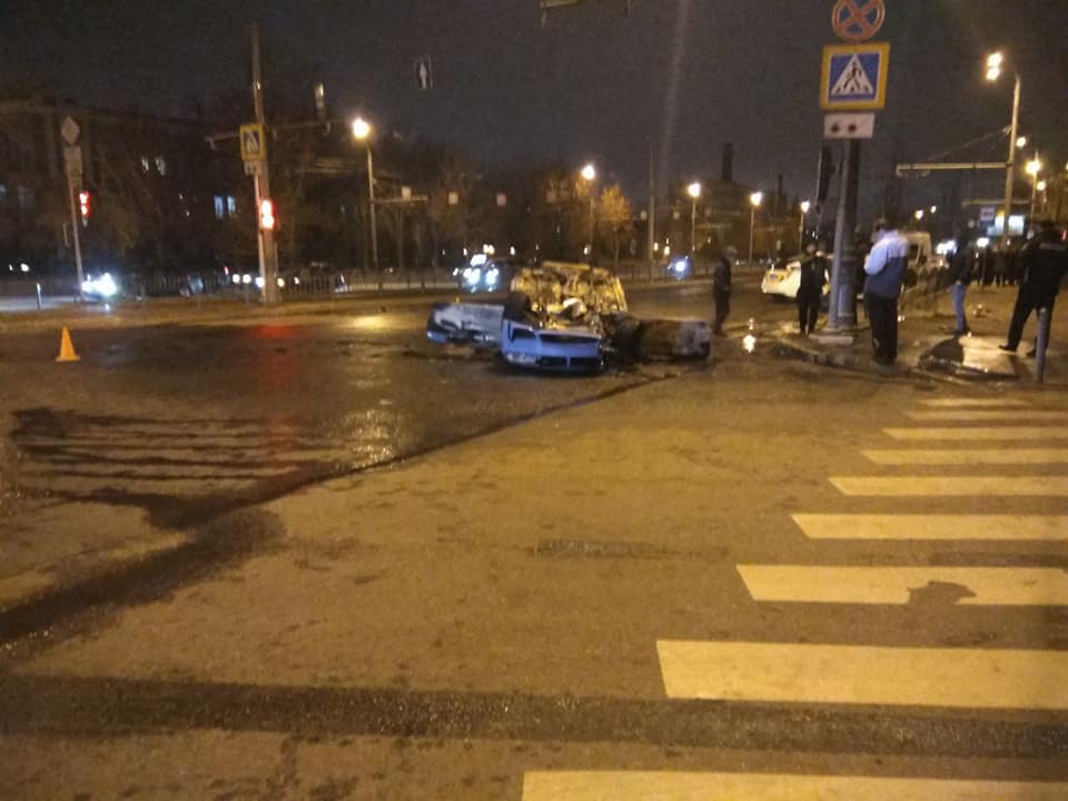 По словам очевидцев происшествия, автомобиль BMW выехал на встречную полосу и зацепил Scoda Octavia, которая в это время делала разворот. После удара BMW влетел в разделительный островок и перевернулся. Автомобиль проехал на крыше около 150 метров, после чего загорелся.