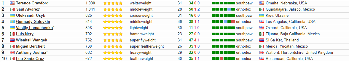 Топ-10 боксеров по версии BoxRec