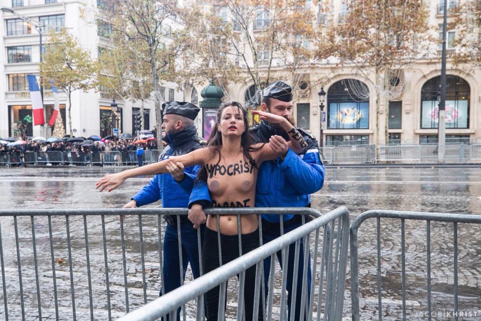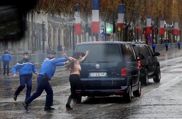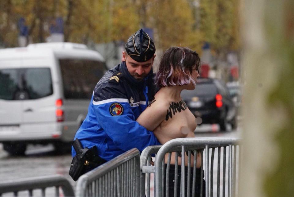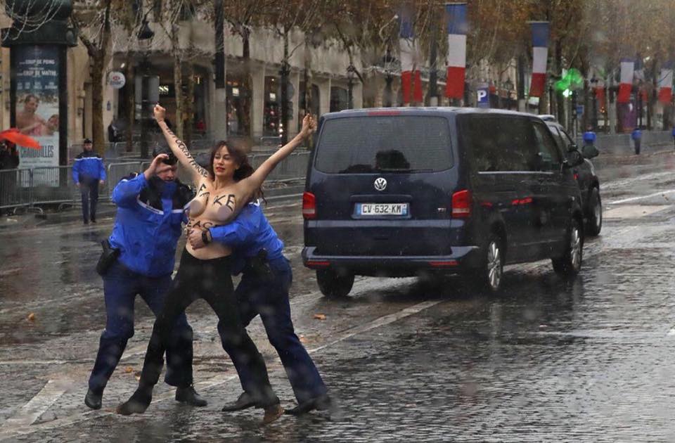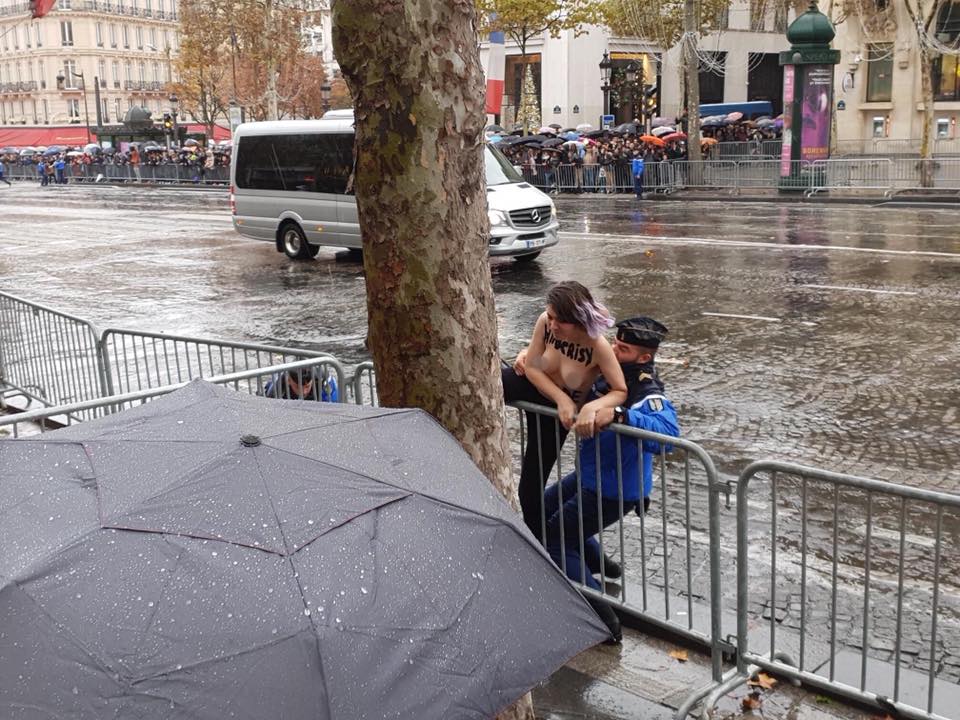 "Активистки Femen попытались помешать проведению памятных мероприятий по случаю завершения Первой мировой, где присутствовали президент США Дональд Трампа и другие мировые лидеры", - говорится в сообщении.