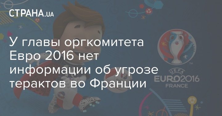 Глава организационного комитета Чемпионата Европы по футболу 2016 года Жак Ламбер отмечает, что не располагает информацией об угрозе терактов во время турнира от спецслужб других стран, и нацелен провести лучший чемпионат в истории. Об этом сообщает "Интерфакс-Украина".