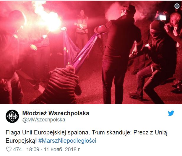 В Варшаве на 200-тысячном марше поляки сожгли флаг Европейского Союза. Фото