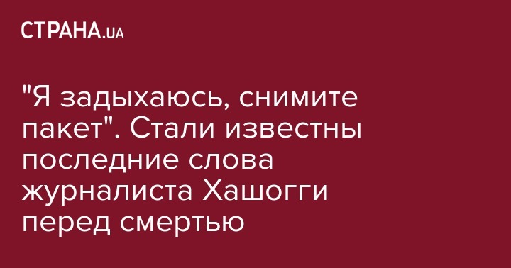 Перед смертью Джамаль Хашогги, колумнист The Washington Post, якобы произнес: "Я задыхаюсь. Снимите пакет с моей головы, у меня клаустрофобия".