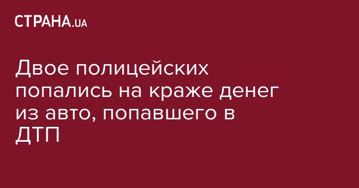 Владелец автомобиля заявил, что из салона авто пропали несколько десятков тысяч гривен. В ходе расследования обстоятельств кражи выяснилось, что присвоили чужие деньги двое сотрудников Нацполиции области, которые выезжали на место ДТП. В тайнике, который устроили полицейские, обнаружили 24 тысячи гривен.