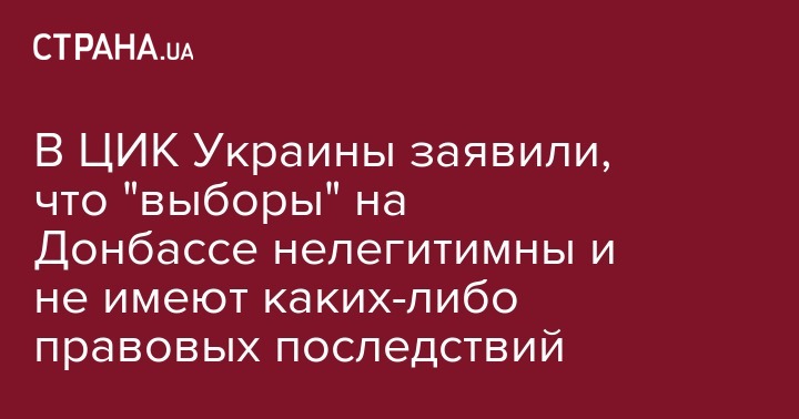Центральная избирательная комиссия Украины (ЦИК) отмечает, что "выборы", проведенные 11 ноября на временно оккупированных территориях в Донецкой и Луганской областях, нелегитимны, поскольку организованы и проведены с нарушением норм Конституции Украины и избирательного законодательства, а также вопреки нормам и принципам международного права.