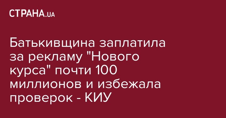 Батькивщина заплатила за рекламу "Нового курса" почти 100 миллионов и избежала проверок - КИУ