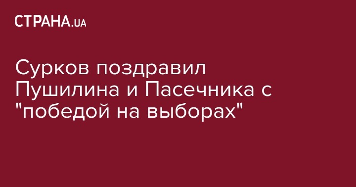 По его словам, "Сурков уже направил поздравления с победой на выборах глав народных республик Донбасса Денису Пушилину и Леониду Пасечнику".