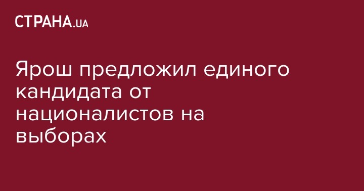 Бывший лидер "Правого сектора" Дмитрий Ярош обратился к националистам с призывом выступить на выборах объединенной силой, выставив единого кандидата в президенты и сформировав единый список на выборы в Верховную Раду.