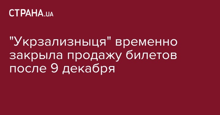 "Укрзализныця" временно закрыла продажу билетов после 9 декабря