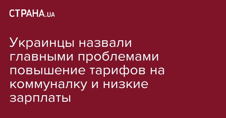 59% респондентов, опрошенных социологической группой "Рейтинг", Украинским центром экономических и политических исследований имени Александра Разумкова и Киевским международным институтом социологии (КМИС), считают основной проблемой для себя повышение тарифов на коммунальные услуги, 52% - низкие зарплаты и пенсии.