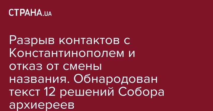 Разрыв контактов с Константинополем и отказ от смены названия. Обнародован текст 12 решений Собора архиереев