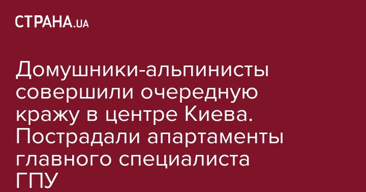 Домушники-альпинисты совершили очередную кражу в Киеве. На этот раз пострадали апартаменты главного специалиста Генеральной прокуратуры на Печерске, по улице Ивана Кудри. Об этом Страна узнала из собственных информированных источников в МВД Украины.