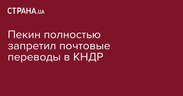 Власти Китая ввели запрет на отправку денег почтовыми переводами в Северную Корею. Об этом сообщает ТАСС со ссылкой на южнокорейский телеканал KBS.