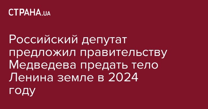 Депутат выступает за то, что тело Ленина нужно захоронить, устроив прощальную траурную церемонию к 100-летию его смерти в 2024 году.