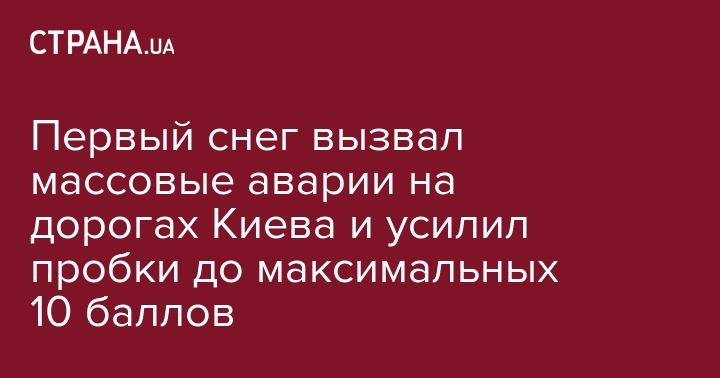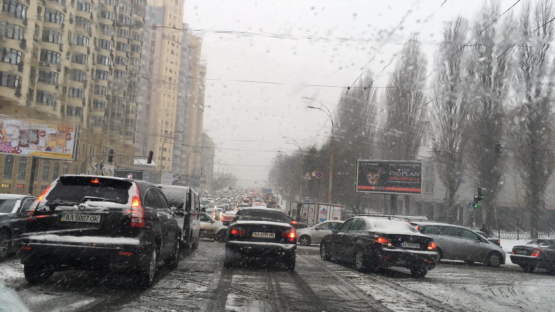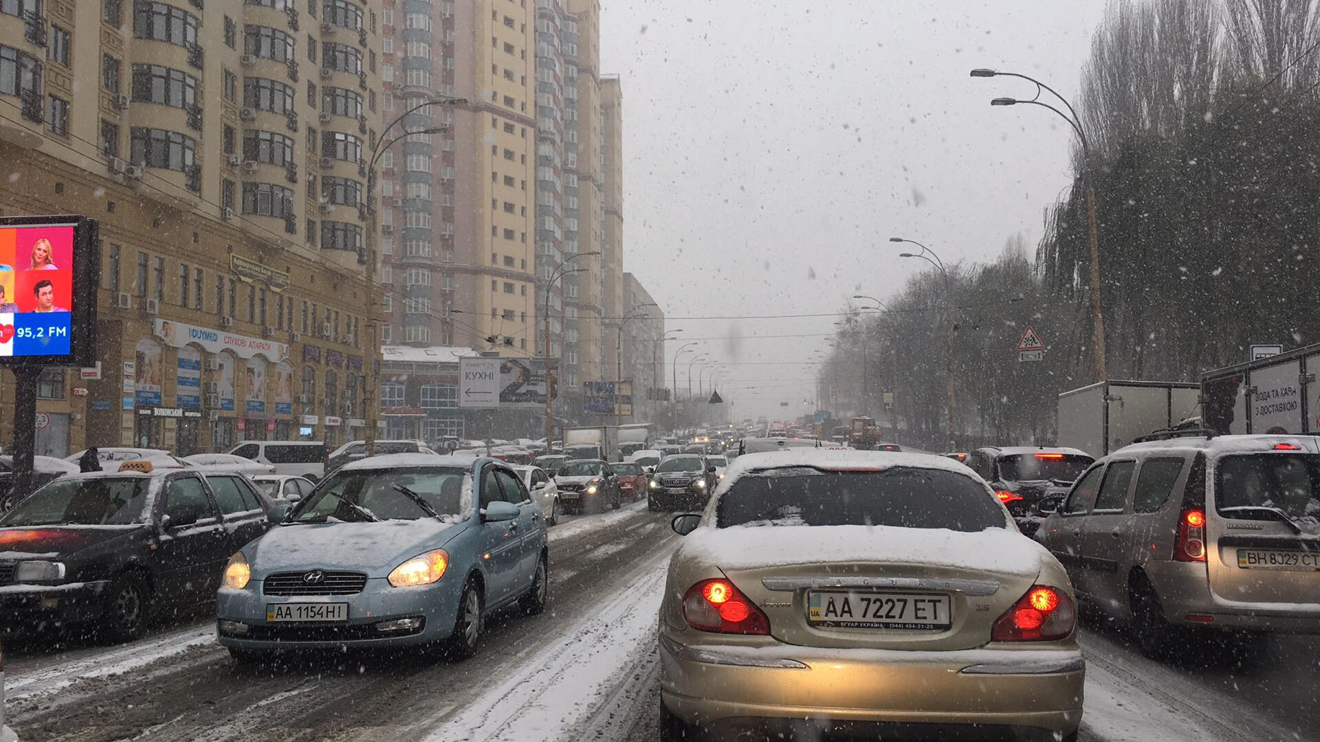 Утренние пробки, которые образовались в Киеве из-за ДТП и ремонтных работ на дорогах, к 11:00 только усилились. Первый снег, который начался несколько часов назад, продолжает идти, провоцировать аварии на дорогах, что, в свою очередь, способствует появлению заторов. В Киеве пробки достигли 10 баллов и уже произошло не менее 15 ДТП.