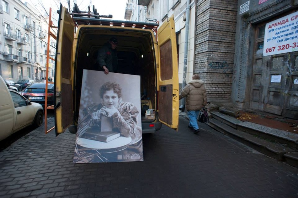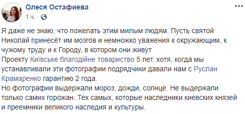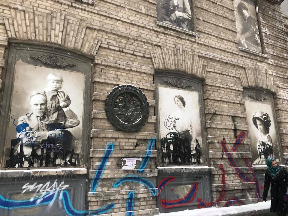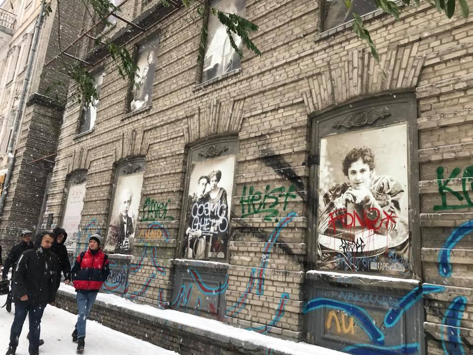 Сегодня, 14 ноября, киевляне стали свидетелями последствий жестокого акта вандализма по улице Ярославов вал, 15. Неизвестные "художники" закрасили разноцветными баллончиками фотографии старинных портретов, которые были созданы в рамках проекта Киевского благотворительного общества