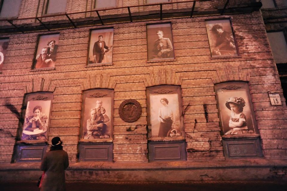 Окна заброшенного дома по улице Ярославов Вал,15 украсили фотографиями еще в 2015 году. Это дореволюционные портреты. Ретро-фотографии появились в оконных проемах бывшего отеля военных "Красная звезда". На первых двух этажах здания находилась своеобразная галерея.