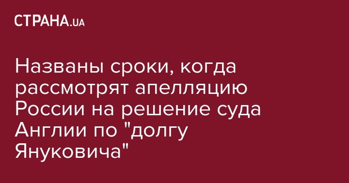 Названы сроки, когда рассмотрят апелляцию России на решение суда Англии по "долгу Януковича"