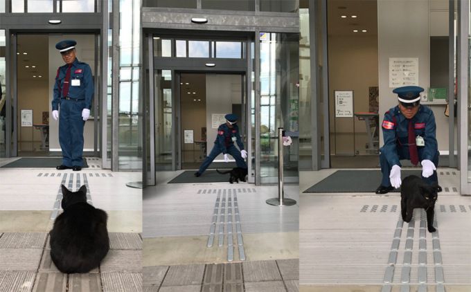 Каждый раз путь котам преграждают охранники. Однажды одному из безбилетных пушистых посетителей удалось проскочить через мужчину на входе, но кот не рассчитал, что в зале есть администратор. Иногда четвероногие пытаются надавить на жалость, заваливаясь на спину у ног сотрудников музея, но работников Ономити так просто не проведешь