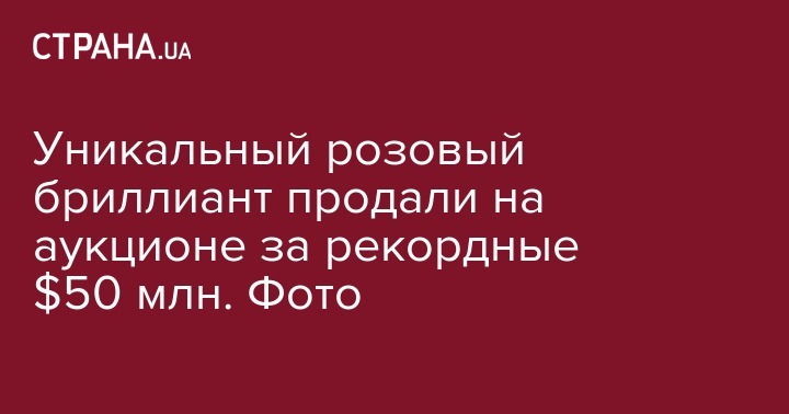Редкий розовый бриллиант под названием "Розовое наследие" (Pink Legacy) продан на торгах, устроенных аукционным домом Christie's, за рекордные 50,375 миллиона долларов. Об этом сообщается на сайте аукционного дома.