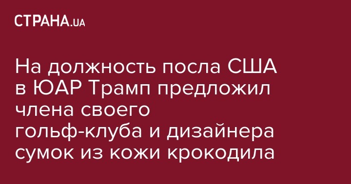 Президент США Дональд Трамп выступил с необычным кадровым решением дипломатической проблемы. Глава Белого дома предложил назначить на должность посла в ЮАР модного дизайнера Лану Маркс.