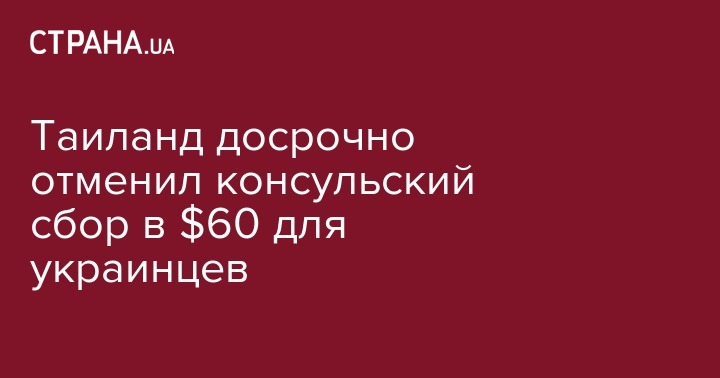 Таиланд досрочно отменил консульский сбор в $60 для украинцев
