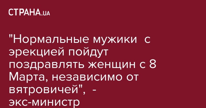 Червоненко подчеркнул, что правительство не имеет права поднимать такие вопросы, когда в Украине "холодные города", люди "теряют человеческий облик" и наша страна "скоро выйдет на первое место по туберкулезу. "Они нам, как умалишенным, кидают вопрос: восьмое-не восьмое. Да все нормальные мужики с эрекцией пойдут поздравлять своих женщин, потому что Вятрович - это не повод для разговоров… Он просто тратит два миллиона денег", - добавил экс-министр.