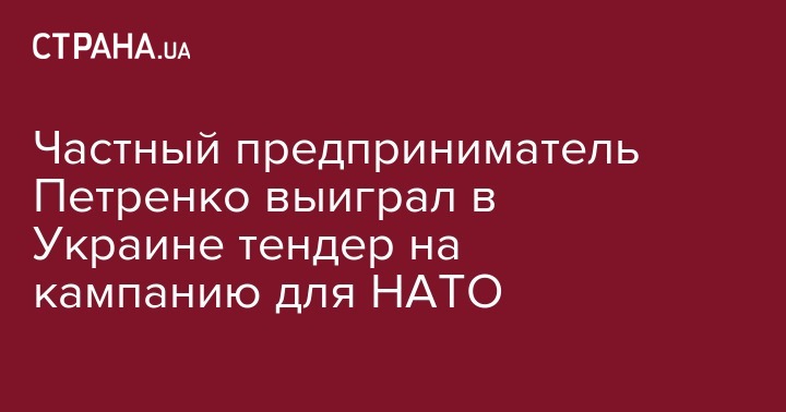Тендерный комитет Госкомтелерадио, рассмотрев предложения электронных торгов по закупке услуги по организации и проведению кампании по повышению уровня осведомленности на тему "Сотрудничество Украина-НАТО как катализатор реформ", определил победителем ЧП Петренко И.Н.