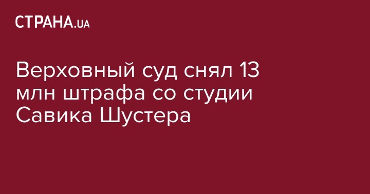 После трех лет судебных разбирательств Верховный суд Украины принял окончательное решение по делу "Савик Шустер Студии", отменив ей штраф налоговой инспекции в 13 млн грн. Об этом 15 ноября сообщила пресс-служба студии в Facebook.
