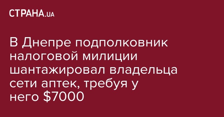 В Днепре подполковник налоговой милиции шантажировал владельца сети аптек, требуя у него $7000