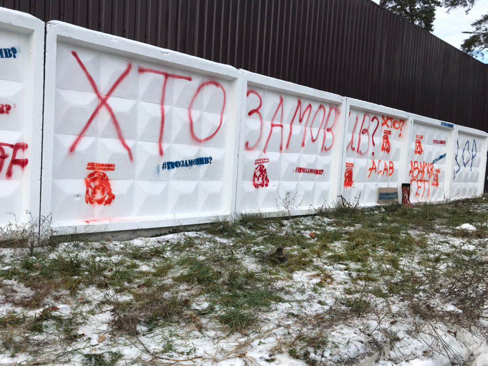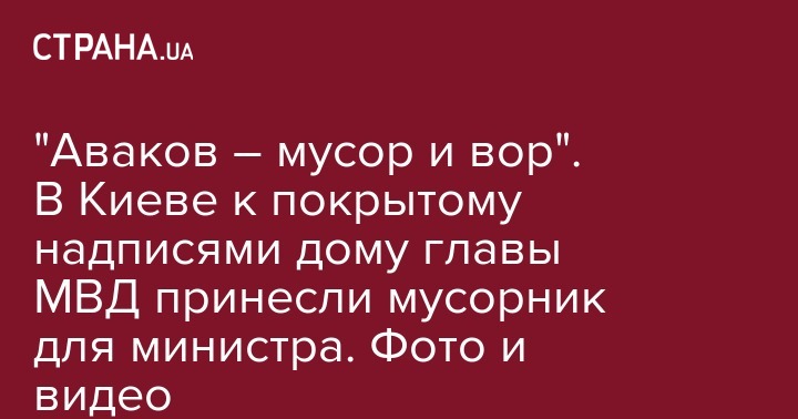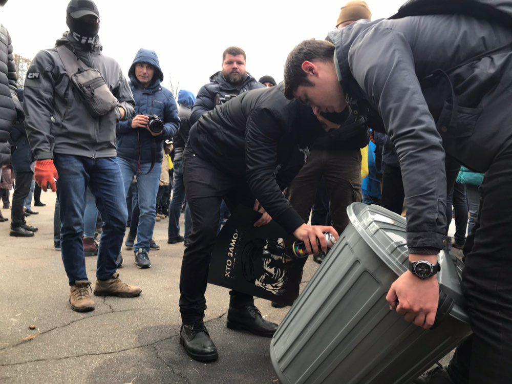 "Аваков – мусор и вор". В Киеве к покрытому надписями дому главы МВД принесли мусорник для министра. Фото и видео