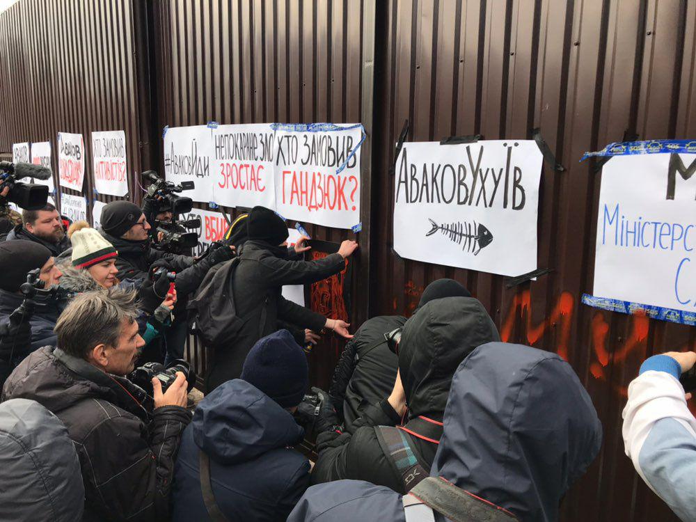 В субботу, 17 ноября, активисты провели акцию с требованием отставки министра внутренних дел Украины Арсена Авакова. Среди организаторов – члены инициативы "Кто убил Катю Гандзюк", "Автомайдан", Центр противодействия коррупции и другие. Однако среди участников были и представители более радикальных организаций, например, ультраправые из С14. Также присутствовали общественники, которые, как и Гандзюк, стали жертвами нападений: Виталий Устименко, Сергей Стерненко ("Страна" ранее писала детально о его случае).