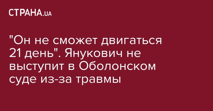 Беглый президент Украины Виктор Янукович отказался выступать в Оболонском суде Киева суде 19 ноября, так как получил травму и находится в московской больнице. Об этом сообщает "Громадське".