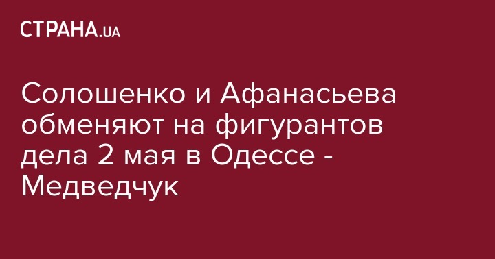 Участник трехсторонней контактной группы в Минске Виктор Медведчук заявил, что задержанных украинцев Геннадия Афанасьева и Юрия Солошенко, которые находятся в российских тюрьмах, могут вернуть на родину в обмен на двух россиян, причастных к событиям 2 мая 2014 года в Одессе.
