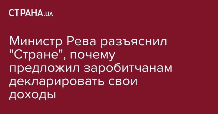 Министр Рева разъяснил "Стране", почему предложил заробитчанам декларировать свои доходы