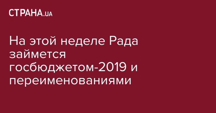 На очередной пленарной неделе, с 20 по 23 ноября, в Верховной Раде планируют во втором чтении рассмотреть проект бюджета на 2019 год. Также нардепы планируют обратиться в Конституционный суд с вопросом о переименовании Кировоградской и Днепропетровской областей. Об этом передает пресс-служба Рады.